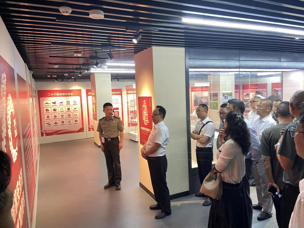 首先,大家在講解員的帶領下參觀了“總體國家安全觀•創(chuàng)新引領10周年”主題展覽,認真了解了總體國家安全觀的發(fā)展脈絡、核心要義以及全市各級黨委(黨組)在政治、經(jīng)濟、社會、文化、科技、網(wǎng)絡、生態(tài)、核、資源、海外利益、生物與公共衛(wèi)生等11個領域貫徹踐行總體國家安全觀、統(tǒng)籌發(fā)展和安全的具體實踐。