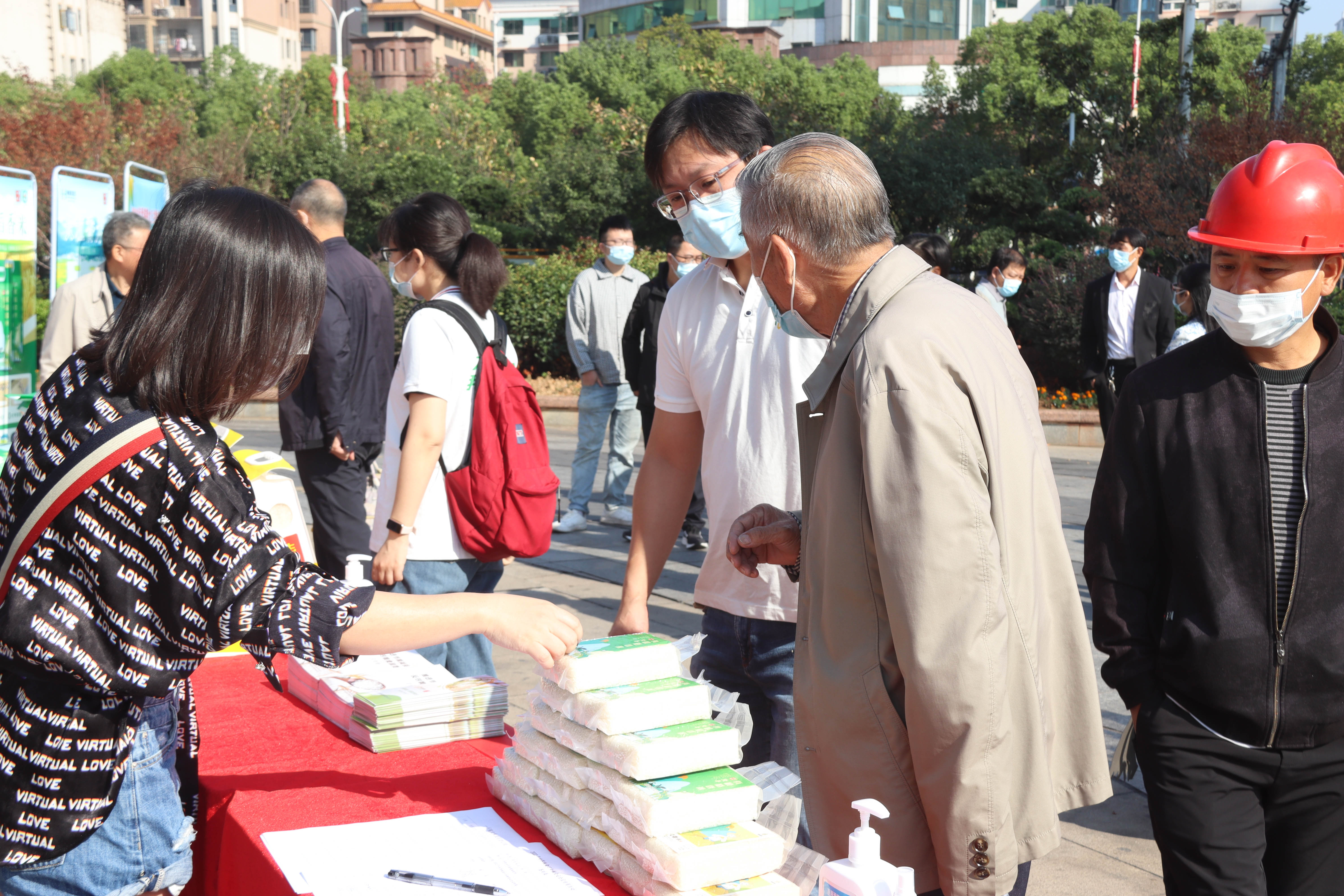 今年10月16日是第42個世界糧食日,主題是“不讓任何人掉隊。更好生產(chǎn)、更好營養(yǎng)、更好環(huán)境、更好生活”?;顒蝇F(xiàn)場布置了咨詢點和宣傳展板,志愿者們向群眾發(fā)放宣傳手冊,普及糧食安全法律法規(guī),介紹放心糧油相關(guān)知識,講解鑒別優(yōu)質(zhì)糧油方法,推行“厲行節(jié)約、反對浪費”的良好社會風尚。