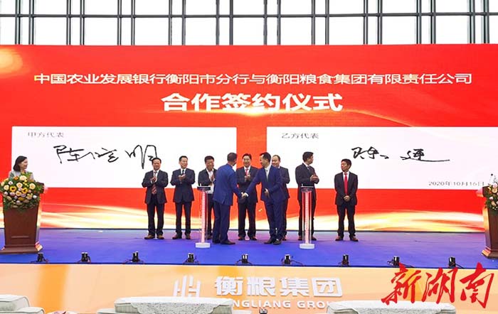 △揭牌儀式上,衡糧集團與市農(nóng)發(fā)行簽署了合作框架協(xié)議